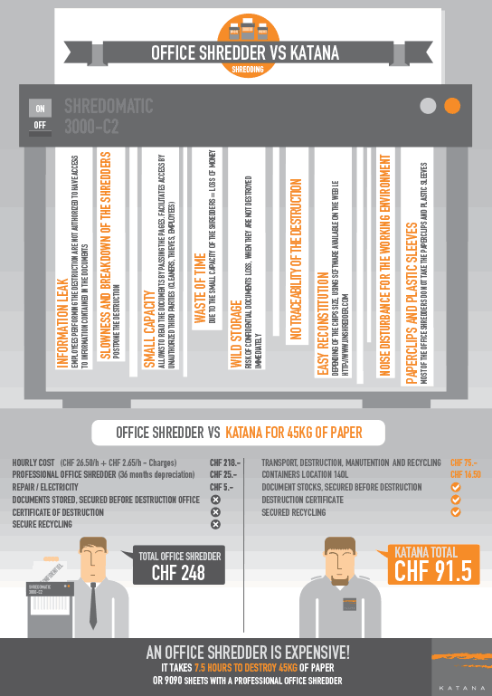 Discover the dangers of using office shredders to destroy confidential papers and the advantages that offer a secured solution such as Katana's on-site destruction.