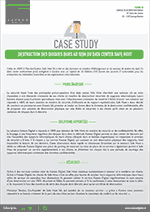 La destruction physique sur site des disques durs est la seule solution sans risques puisque sans transport. La destruction se fait sous vos yeux et/ou sous le contrôle de votre client.